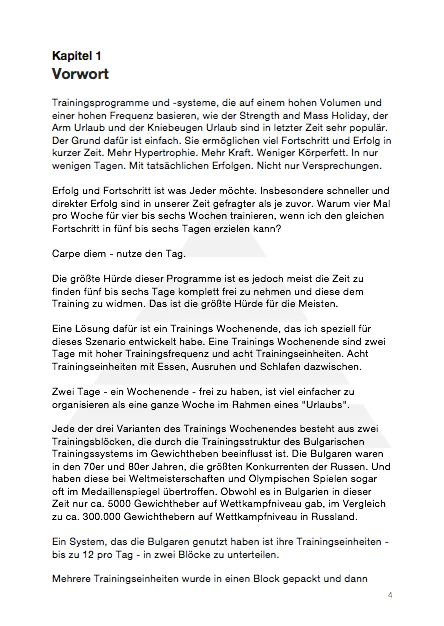 Trainingsprogramme und -systeme, die auf einem hohen Volumen und einer hohen Frequenz basieren, wie der Strength and Mass Holiday, der Arm Urlaub und der Kniebeugen Urlaub sind in letzter Zeit sehr populär. Der Grund dafür ist einfach. Sie ermöglichen viel Fortschritt und Erfolg in kurzer Zeit. Mehr Hypertrophie. Mehr Kraft. Weniger Körperfett. In nur wenigen Tagen. Mit tatsächlichen Erfolgen. Nicht nur Versprechungen.